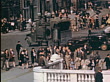 1940s high angle people going down stairs of Opera Metro entrance / traffic in background / Paris, France - stock video