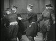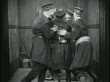 B/W 1915 group of Keystone Kops running + bumping around small room + running up stairs / fetaure - stock video