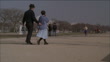 PAN Couple walking the National Mall and sitting on a bench with the United States Capitol Building in the background / Washington D.C., United States - 4K stock video