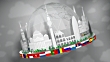 3D Animation. Depths of Field Effect. Big Ben, Eiffel Tower, Leaning Tower of Pisa, Kremlin, Shard, London Eye. Seamless Loop.