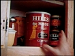 1970s television commercial for Hills Bros Coffee / woman wearing curlers in hair and dressed in bathrobe tries to wake up in the morning / she walks around like a zombie while kids are running around, throwing Frisbees inside house / woman drowsily makes coffee in percolator / she drinks coffee, wakes up / she opens doors and yells at kids to 'knock it off'. Hills Bros Coffee commercial on January 01, 1970 (Footage by Getty Images)