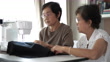 Retired elderly learning and teaching about tailor at home , 4K(UHD)