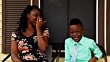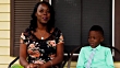 MS Smiling young boy and mother sitting on front porch of home - 4K stock video