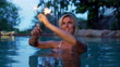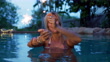 A woman with sparklers celebrates in a swimming pool - 4K stock video