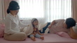 Asian mother and daughter lean on the bed and recover after Give birth second newborn - 4K stock video