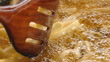 Close up of A chef frying delicious French fries cooked in boiling oil.