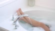 Closeup of open water tap and female legs while she is taking bath - 4K stock video