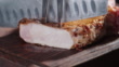Cutting a slice of freshly fried pork chop - 4K stock video