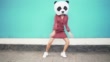 Young woman dressed up in panda dancing on the street