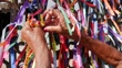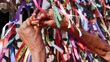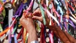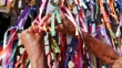 Female hands tying up a ribbon on Our Lord of Bonfim church in Salvador, Bahia