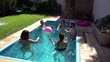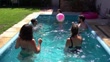 Friends playing with beach ball in swimming pool at home - 4K stock video