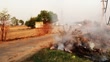 4K Video : Garbage burning outdoors near agricultural field during day time.