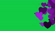 Green screen purple hearts transition. Romantic shiny objects for valentines, wedding or love. Transition masks.