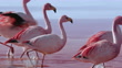 Herd of flamingo walking on Red lake (Laguna Colorada) in Altiplano / Bolivia - 4K stock video