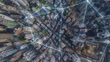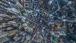 Hyperlapse top view smart city wireless network signal data transmission high speed and connection of Hong Kong business district