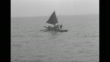 Title: "Indo-China - Gripping Scenes of Flight From the Reds" superimposed over junk with refugees in water / junk loaded with refugees making its way from Communist-held territory / VS junk almost completely submerged as refugees row, refugees sitting in water / junk showing mother and child / Shot from another boat as man throws them line / Shot from top of refuges in partially submerged junk / LS another junk approaching and letting down sail / CU refugees rowing / Top shot refugee women and children seated in partially submerged junk / Shot from rescue boat as refugees clamber and are helped aboard / Top shot of small child being handed up / Top shot of young girl being handed up / CU small child standing on deck of rescue boat looking very forlorn / Top closer shot of another junk full of refugees coming alongside / Top shot of small child being handed up / Top shot of baby being handed up / LS French landing craft with refugees aboard approaching shore / Refugees on board, man feeding small child / Back shot of refugees writing letter / CU two small refugee children making the sign of the Cross / refugees on deck looking shoreward / LS escaping junks approaching shore / Note: exact day not known