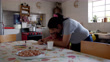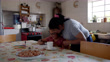 Loving mom offering hot chocolate to daughter while supervising her homework both looking happy - 4K stock video