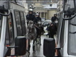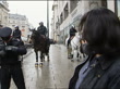 TGV One group of contained protesters outside John Lewis PAN to another group, wearing white overalls and helmets, clashing with police