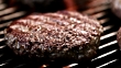 Slow motion close up locked down shot of a hamburger sizzling on the grill.