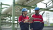 4K Male And Female Oil Workers Using Digital Tablet Working At Oil Refinery