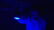 A pathologist uses a blue light and special goggles to conduct a forensic examination. - HD stock video