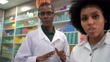 Pharmacists attending a customer at the pharmacy - personal perspective - 4K stock video