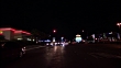 PROCESS PLATE STRAIGHT BACK OF CAR DRIVING DOWN CITY STREET. PASS MULTI-STORY BUILDINGS, NEON SIGNS THAT READ "TROPICANA EXPRESS HOTEL AND CASINO,", "REGENCY HOTEL AND CASINO," "EDGEWATER," "AQUARIUS," AND "RIVERSIDE CASINO," "THANKS FOR VISITING LAUGHLIN NV" CARS DRIVING IN BOTH DIRECTIONS, STREET LIGHTS AND PALM TREES ON BOTH SIDES OF STREET. CAR STOPS AT STOPLIGHTS. INTERSECTIONS. CITIES.