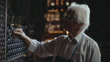 Slow motion shot of the connoisseur gracefully swirls a glass of white wine. In a moment of refined indulgence, the wine swirls like liquid silk, inviting anticipation. With a deliberate sip, the connoisseur takes center stage, orchestrating a dance of taste that transcends the ordinary. Join us in this captivating vignette, where every swirl and sip embodies the artistry of wine appreciation, painted against the backdrop of the serene cellar ambiance. Footage was taken in 8K resolution.