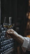 Slow motion shot of the connoisseur gracefully swirls a glass of white wine. In a moment of refined indulgence, the wine swirls like liquid silk, inviting anticipation. With a deliberate sip, the connoisseur takes center stage, orchestrating a dance of taste that transcends the ordinary. Join us in this captivating vignette, where every swirl and sip embodies the artistry of wine appreciation, painted against the backdrop of the serene cellar ambiance. Footage was taken in 8K resolution.