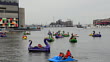 MS Shot of Baltimore Maryland Inner harbor with families out of dragon boats peddling for fun on Chesapeake Bay / Baltimore, Maryland, United States - HD stock video