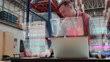 Smart Warehouse Management System Concept : Male Worker working with Futuristic Animation Effect Shows Online Connectivity of Every Unit to the Logistics Center. - 4K stock video