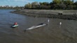The Argentine Naval Prefecture is investigating a dead whale that washed ashore on the banks of the Rio de la Plata near Buenos Aires (Footage by AFPTV via Getty Images)