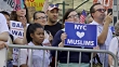NEW YORK, NY – JUNE 26, 2018: The United States Supreme Court on Tuesday upheld President Donald Trump's controversial Travel Ban (AKA ‘Muslim Ban’) on travelers from mostly Muslim countries #NoMuslimBanEver. Protests erupt throughout the US. Demonstrators rallied at Foley Square in downtown Manhattan and marched to Battery Park and rallied once again facing the Statue of Liberty. #WeWillNotBeBanned #SupremeCourt #StandWithMuslims (Footage by Tomas Abad/Getty Images).