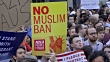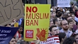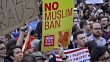 NEW YORK, NY – JUNE 26, 2018: The United States Supreme Court on Tuesday upheld President Donald Trump's controversial Travel Ban (AKA ‘Muslim Ban’) on travelers from mostly Muslim countries #NoMuslimBanEver. Protests erupt throughout the US. Demonstrators rallied at Foley Square in downtown Manhattan and marched to Battery Park and rallied once again facing the Statue of Liberty. #WeWillNotBeBanned #SupremeCourt #StandWithMuslims (Footage by Tomas Abad/Getty Images).