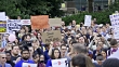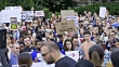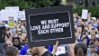 NEW YORK, NY – JUNE 26, 2018: The United States Supreme Court on Tuesday upheld President Donald Trump's controversial Travel Ban (AKA ‘Muslim Ban’) on travelers from mostly Muslim countries #NoMuslimBanEver. Protests erupt throughout the US. Demonstrators rallied at Foley Square in downtown Manhattan and marched to Battery Park and rallied once again facing the Statue of Liberty. #WeWillNotBeBanned #SupremeCourt #StandWithMuslims (Footage by Tomas Abad/Getty Images).