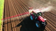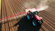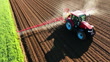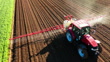 Slow Motion Drone Shot Of Tractor Spraying Pesticides With Equipment On Agricultural Field During Sunny Day