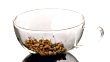 Water pouring over dried herbal tea in glass cup - HD stock video